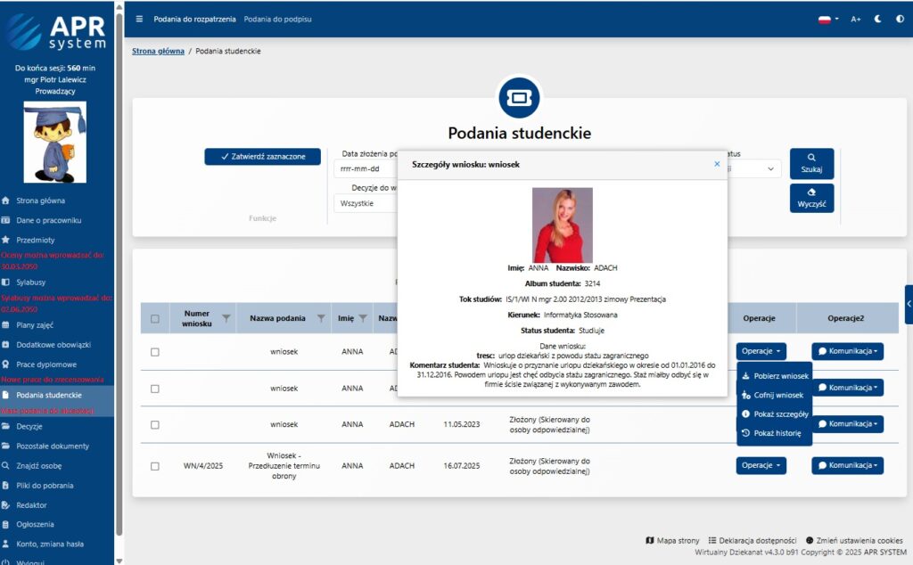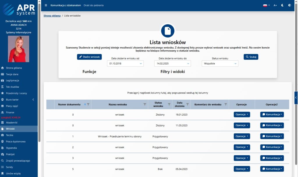 - Ułatwienie procesu obsługi wniosków studenckich na uczelni,